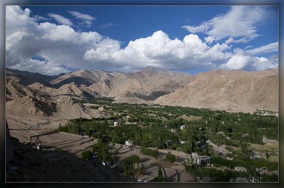 Après un voyage d’un peu plus d’une heure, l’approche de l’aéroport de Leh est un spectacle impressionnant, les ailes de l’avion semblent toucher les montagnes environnantes. Nous voilà posés à 3500 m. Quelques formalités douanières plus tard, nous sortons de l’aéroport où nous attend Targes, notre guide pour les deux prochaines semaines.