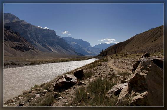 Nous entamons la longue montée du col Hanuma La (4950 m). Une heure trente de montée pour les ancêtres, 51 minutes pour les deux sportifs de l’extrême Yan et Joséphine qui profitent de leur avance pour se faire un petit sommet supplémentaire (5300m). Targes paye ses excès de bière. Descente dans une étroite vallée caillouteuse jusqu’au camp exigu de Snertse (3600 m). Campement au bord de la rivière dont le bruit de TGV va nous ruiner le sommeil.