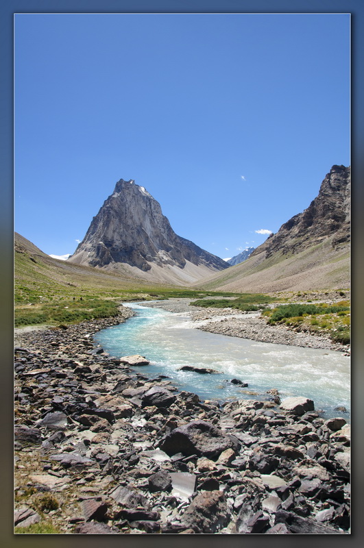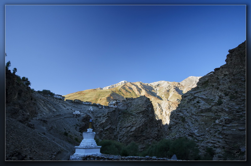 Nous quittons Sking en longeant la rivière avec en point de mire le Gonborangjon, la montagne sacrée des Zanskaris, imposant pic qui n’a jamais été gravi. Son accès est interdit.