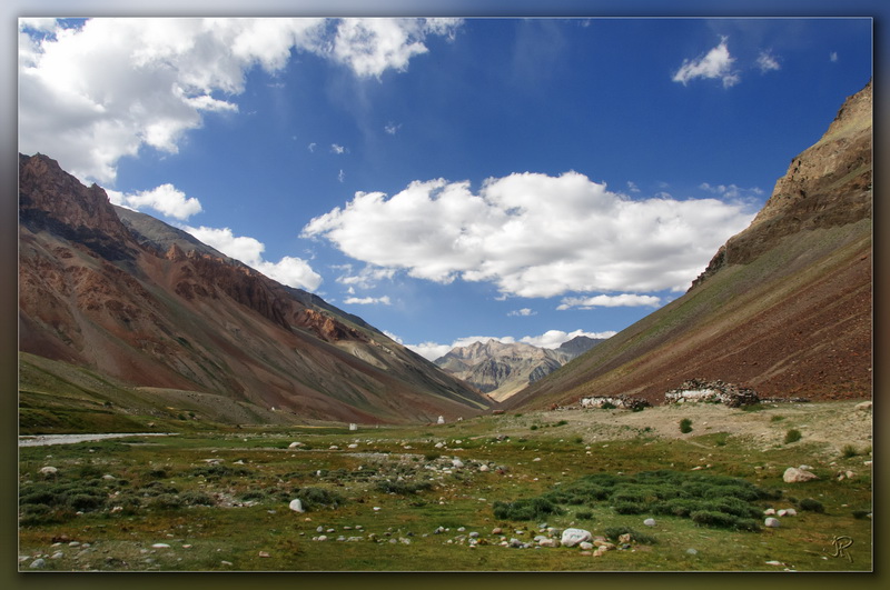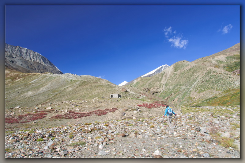 Le dernier jour de marche s’annonce facile. Une longue descente sur une route en construction. Le réseau routier rejoignant le Zanskar ne cesse de s’agrandir, désenclavant cette région jusqu’ici un peu préservée. La nuit a de nouveau été froide; on était encore à 4500m.