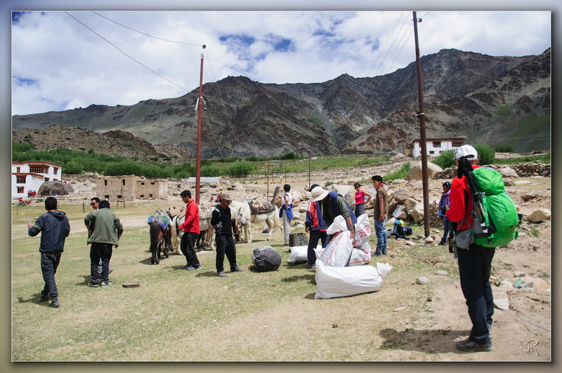 Une fois le petit déjeuner avalé, nous paquetons le camp et attendons plus de 3 heures les véhicules qui doivent nous emmener. Le fameux horaire zanskari a encore frappé… Les horse mans nous quittent, ils retournent à Sking, leur village natal.