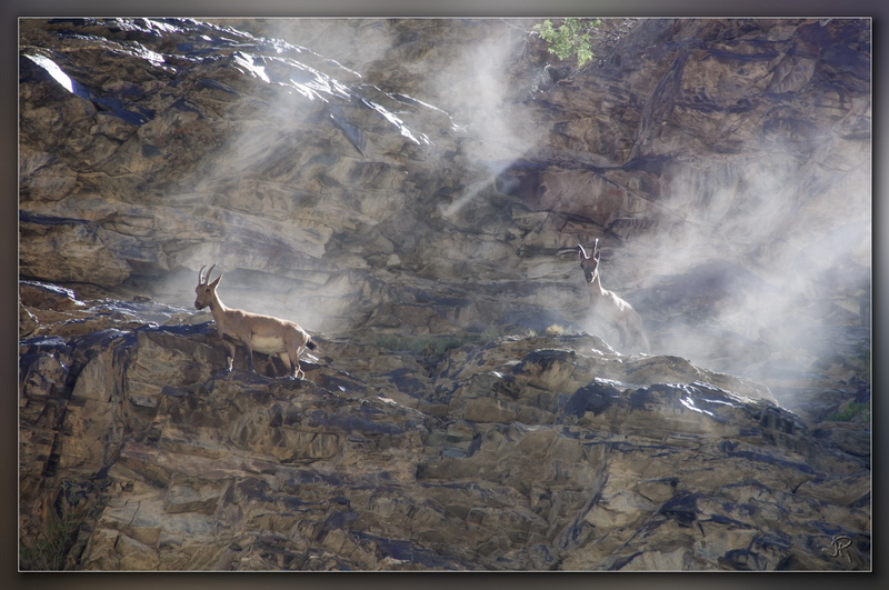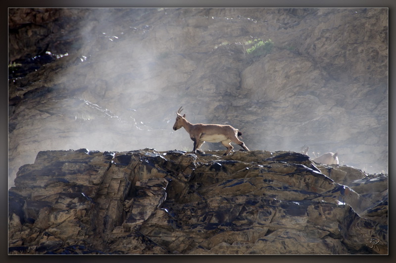Réveil avec le traditionnel "morning tea" petit déjeuner, sac au dos et on commence la journée par une montée assez raide d'une trentaine de minutes. Nous longeons ensuite la rivière  Tsarap pour rejoindre Cha. En chemin belle rencontre avec un troupeau d'ibex. Malheureusement, les grandes focales sont restées à la maison ... trop lourdes ...